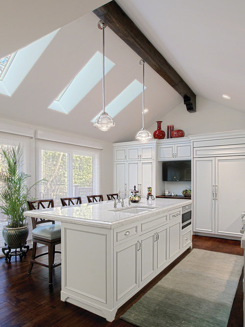 Cathedral Ceiling With Wood Beams | Houzz from st.hzcdn.com Polyurethane, wood laminate or stainable wood. They are very easy to install and they can be made from polyurethane, wood laminate or stainable wood. The ceiling can be covered with wood or drywall. Embrace the luxurious and grand feeling a cathedral ceiling features straight sides that slope upward to match the shape of a roof's pitch. Cathedral ceilings can be a dramatic look. Open up a ceiling with a steel sandwich — an angled steel flitch plate bolted between rafters. The cathedral ceilings combined with wood beams make a dramatic statement for this grand family room. They are generally made of one of three materials: